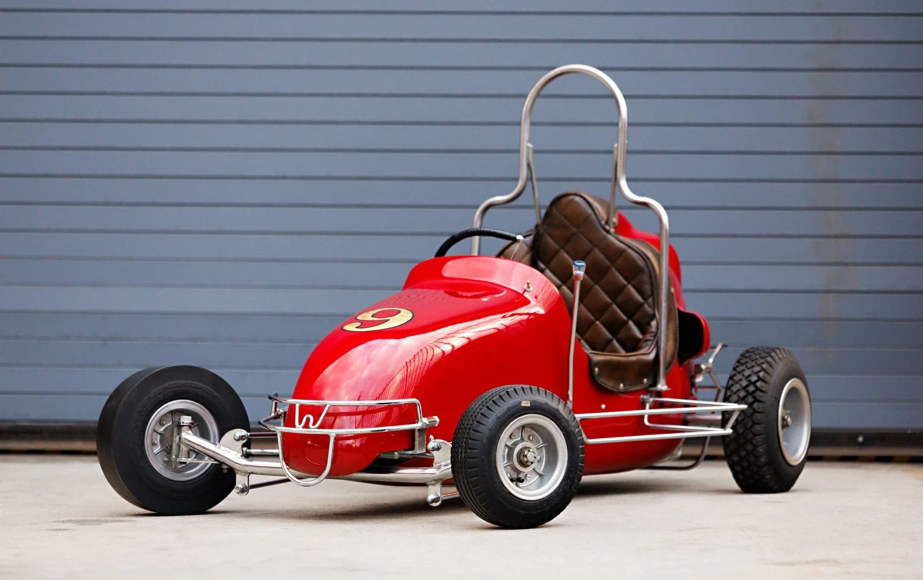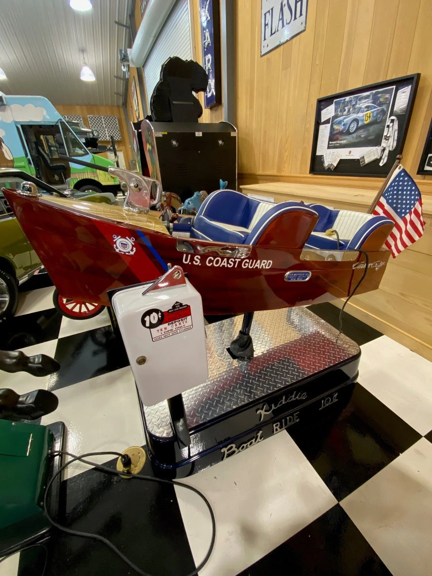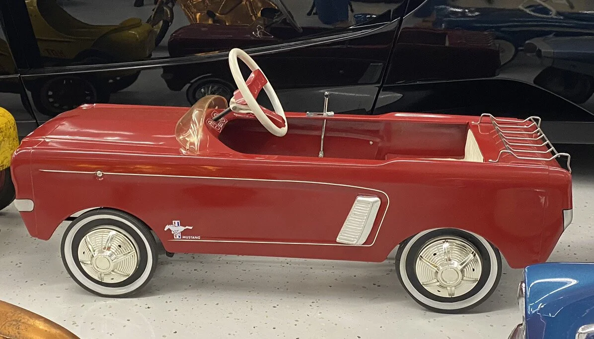 Children’s cars, pedal cars, go-karts, mini bikes, and more, on display from the Audrain Collections.